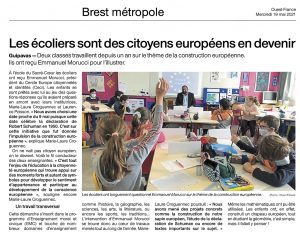 Ouest-France a aussi publié un bel article sur le travail des élèves sur l'Europe et l'intervention d'Emmanuel Morucci dans les classes à Guipavas.