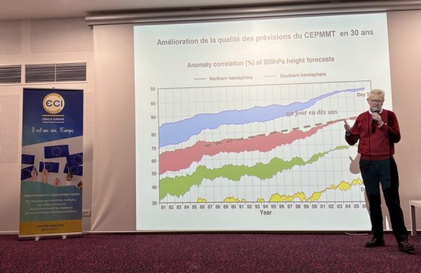 Derrière tout cela, des programmes de coopération entre États européens intelligemment organisés à l’image du CEPMMT, Centre Européen de Prévision Météorologique à Moyen Terme dont Philippe Bougeault, directeur de 2003 à 2009 a présenté avec force détails le fonctionnement.